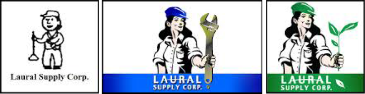 Laural Supply: Branding a Woman-owned business The previous gender-neutral cartoon character was eliminated in favor of a strong, confident woman. Easy-to-read wordmark combined with new character. Wrench (as exclamation mark!) replaced plunger to further promote strength. Blue and gold color palette added to black for impact, and extension to web and collateral graphics. With growing importance on eco-friendly products that use less water and energy, I gave the nw character a green makeover.